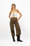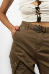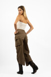 Un cargo moderno con espíritu urbano y un aire militar chic. Confeccionado en algodón liviano y suave, ofrece comodidad absoluta sin perder estructura. Presenta bolsillos laterales con tapa, costuras marcadas y botamanga ajustada para definir la silueta.