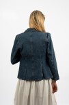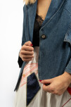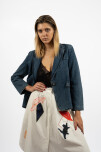 Confeccionada en jean 100% algodón, combina hombros definidos, solapas amplias y un solo botón joya al frente que aporta un toque sutil de brillo.