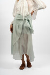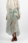 La Falda Acquare está confeccionada en voile translúcido con un delicado efecto arrugado y un gran lazo frontal que se anuda envolviendo la cintura con naturalidad.