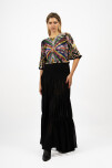 La cintura presenta un elástico ancho fruncido que se adapta al cuerpo, estiliza la figura y aporta comodidad absoluta. Es una falda versátil que podés llevar tanto para looks de día como para outfits nocturnos, combinándola con tops bordados, camisas o remeras simples.