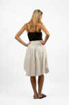 Su cintura elástica y botonadura frontal aportan comodidad y un toque vintage, mientras que su diseño artesanal la convierte en una prenda única, imposible de repetir.