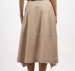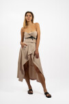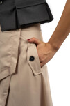 El Suit Major está compuesto por dos piezas: un corset strapless de líneas estructuradas con cinturón de tachas y una falda asimétrica con vuelo amplio y bolsillos con solapas.